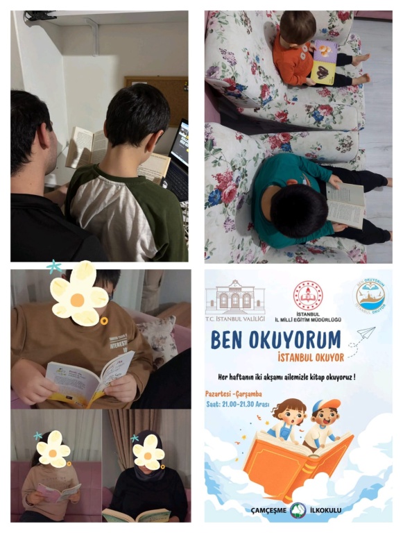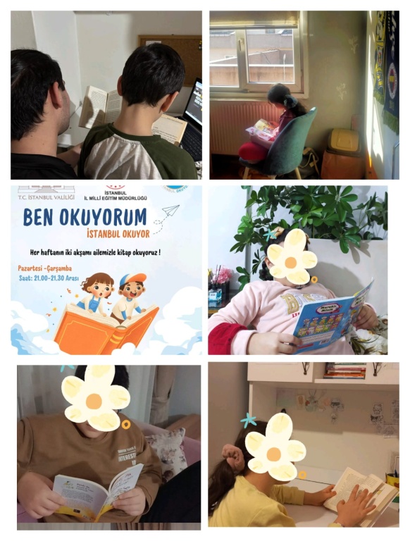 İstanbul Valiliği himayesinde İl Milli Eğitim Müdürlüğünce yürütülen #BenOkuyorumİstanbulOkuyor projesi kapsamında her haftanın iki akşamı Pazartesi-Çarşamba 21.00-21.30 saatleri arasında ailemizle “Kitap Okuma Saatinde” buluşuyoruz.