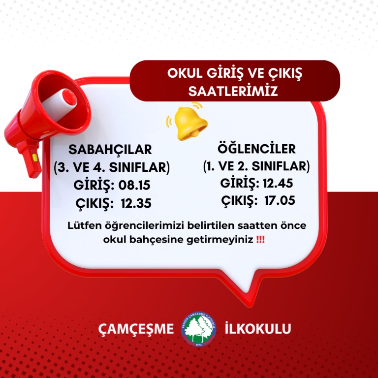 8 Eylül 2025 Pazartesi - Okulun ilk Günü Ders Başlama Bitiş Saatleri